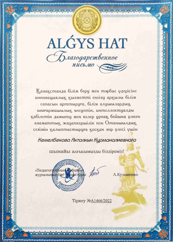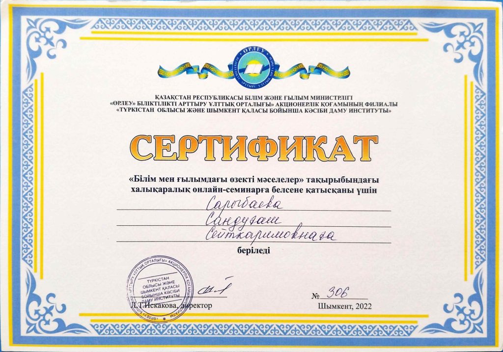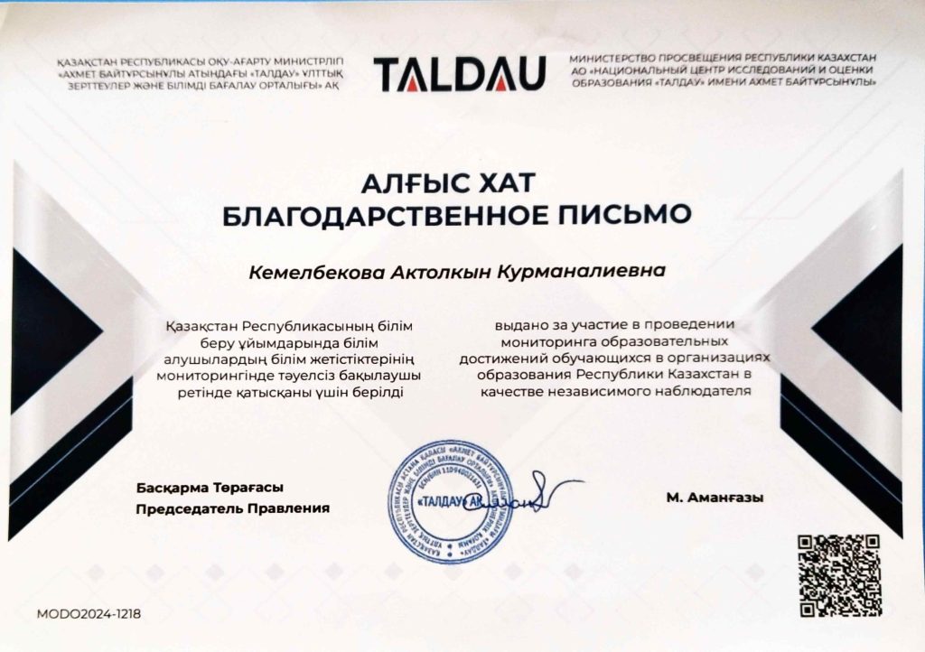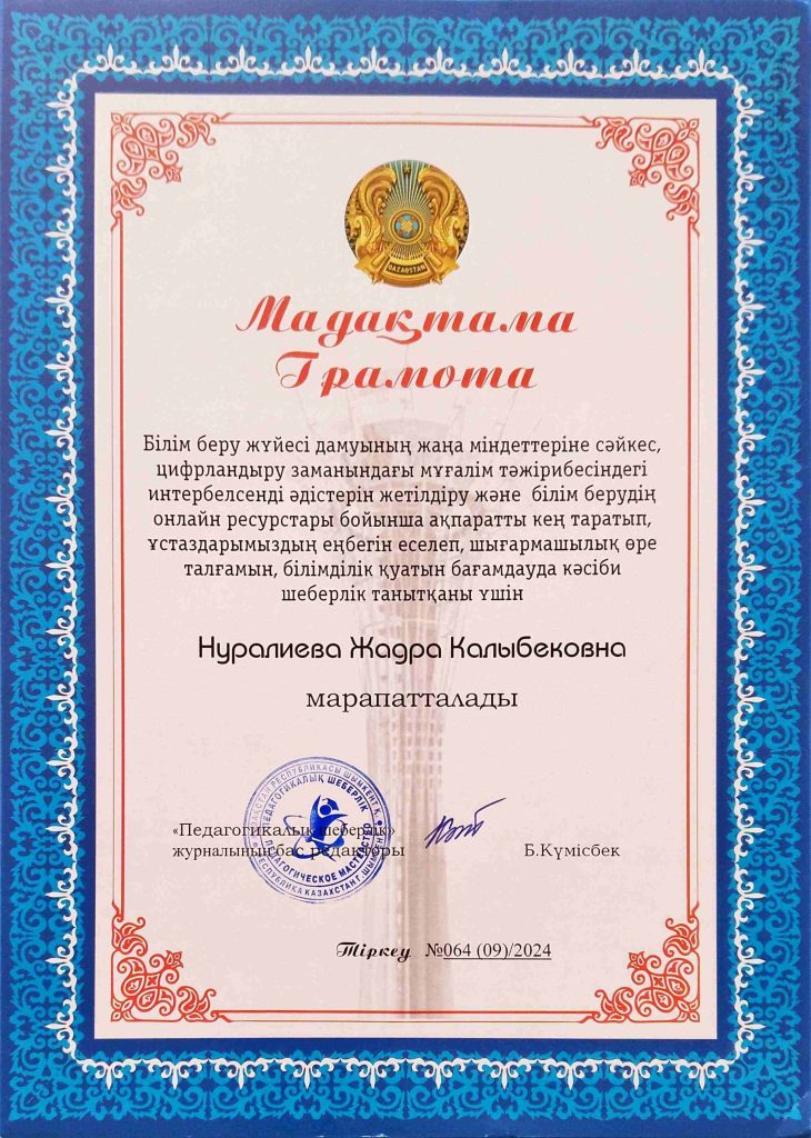 ПЕДАГОГТАРДЫҢ БІЛІКТІЛІК АРТТЫРУЫ