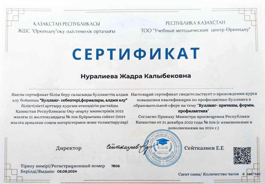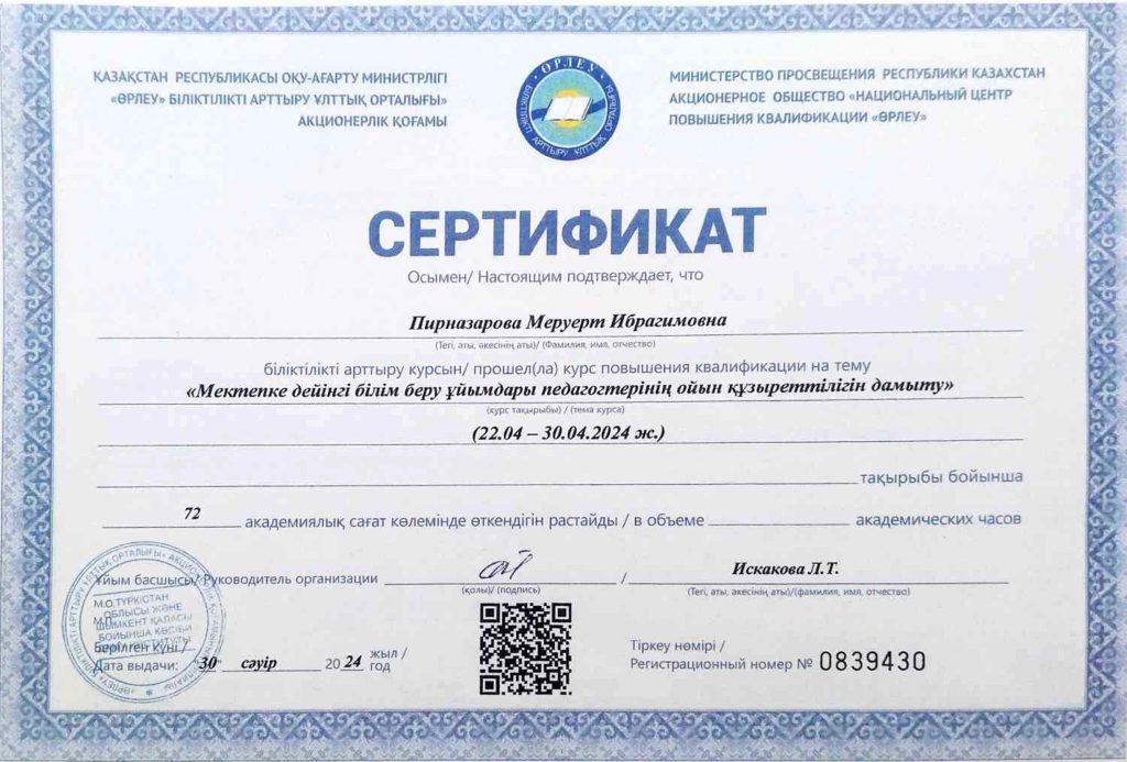 ПЕДАГОГТАРДЫҢ БІЛІКТІЛІК АРТТЫРУЫ