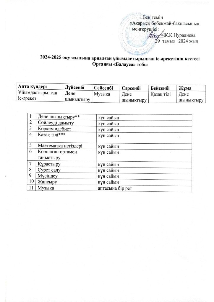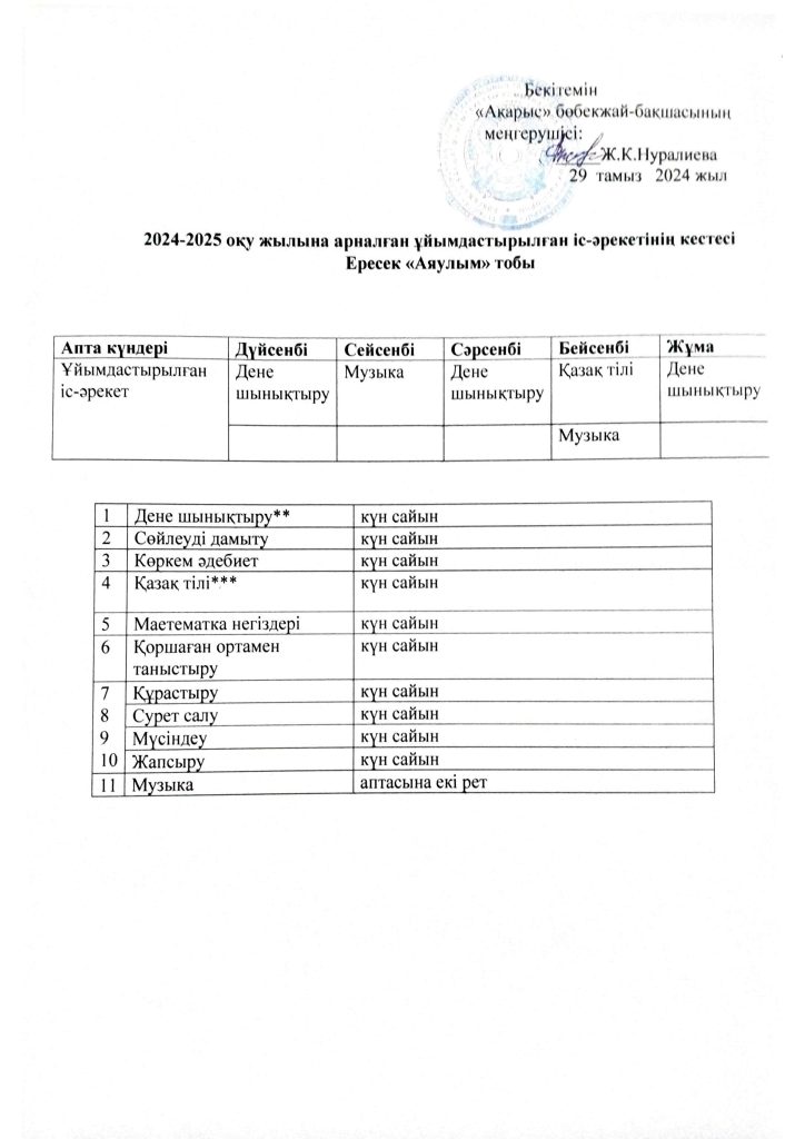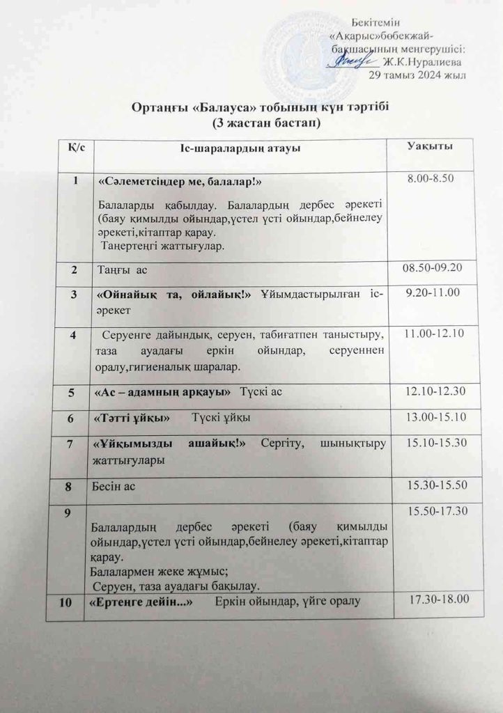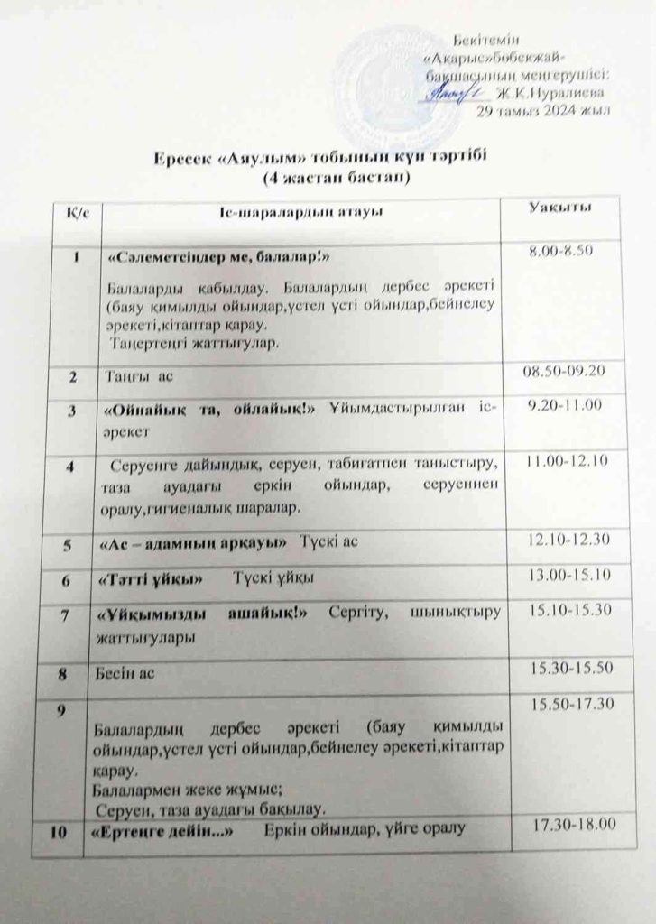 КҮН ТӘРТІБІ, ОҚУ ІС-ӘРЕКЕТ КЕСТЕСІ